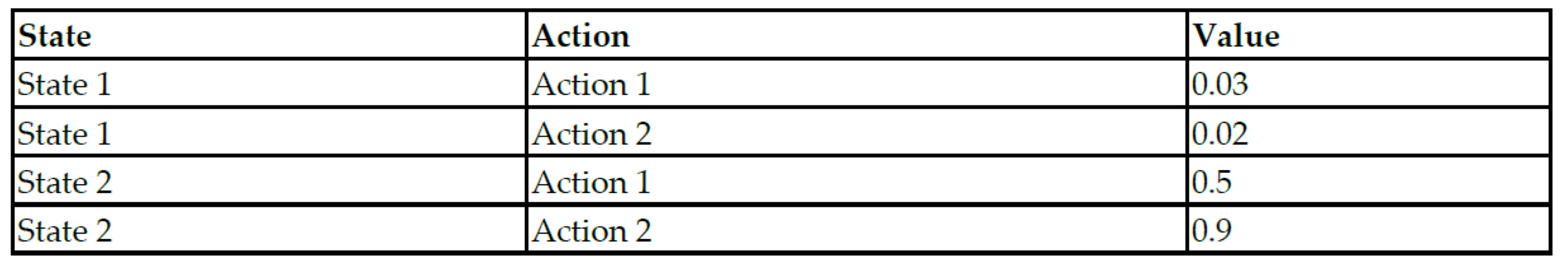 위 표를 보고, \(s_1\) state에서는 \(a_1\) action이, \(s_2\) state에서는 \(a_2\) action이 좋다는 것을 알 수 있다.