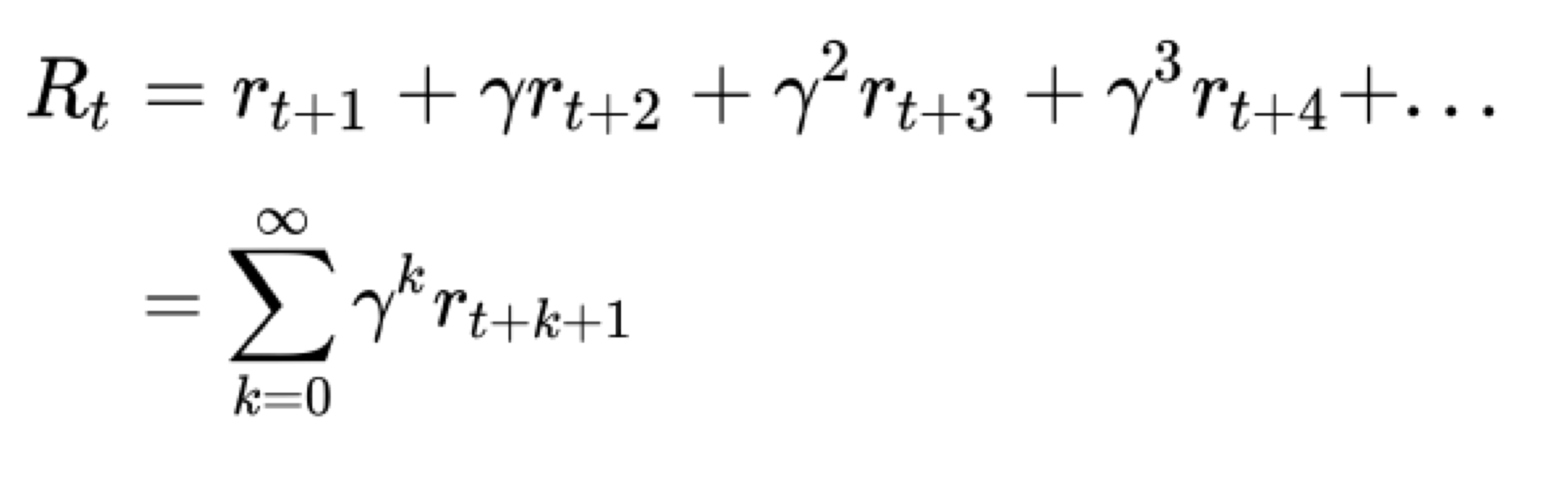 $$ R_t = r_{t+1} + r_{t+2} + ... $$