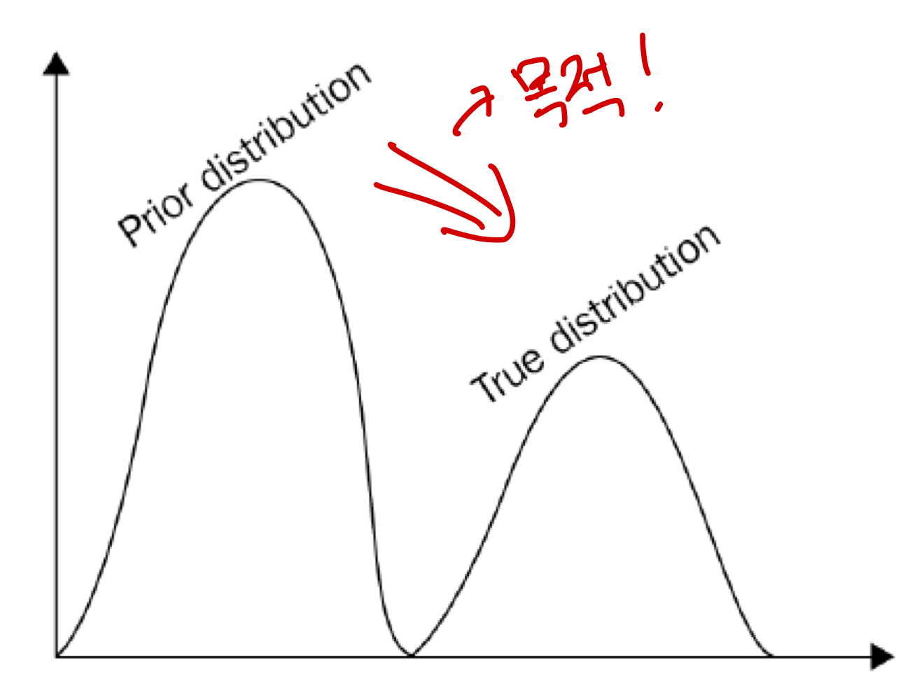 이러한 과정을 반복하면, prior distribution은 true distribution에 가까워지기 시작한다. 과정을 반복함으로써 수렴하도록 할 수 있다.
