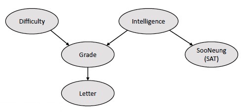 이를 Bayesian network(Directed Acyclic Graph)로 나타내면 다음과 같다.