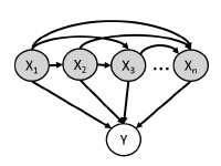 \( p(Y, \mathbf{X}) = p(X_1) p(X_2 | X_1) p(X_3 | X_1, X_2) \cdots p(Y | X_1, \cdots, X_n) \)