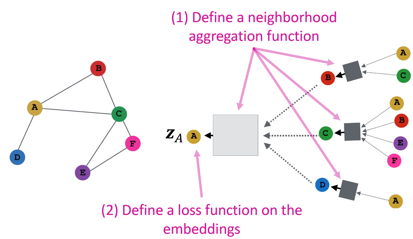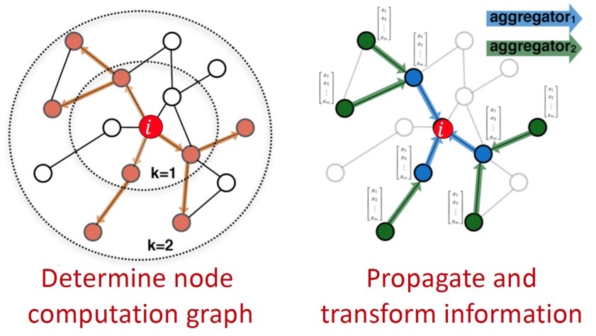 - Neighborhood information을 propagate 및 transform하여 aggregate한다.