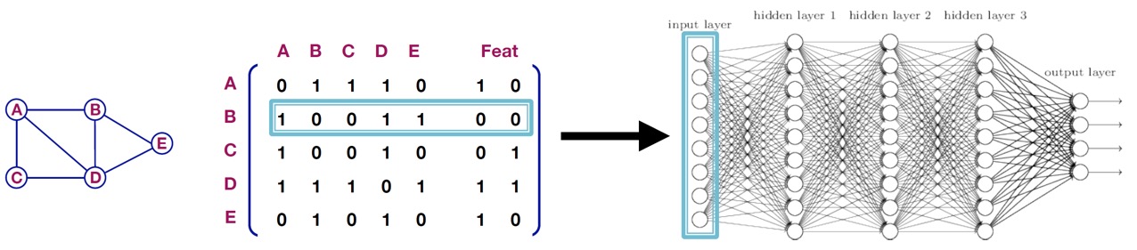 Deep learning을 graph에 적용하는 가장 간단한 방법은 adjacency matrix와 feature를 결합하여 neural network에 입력해주는 것으로, 이를 naive approach라 한다.