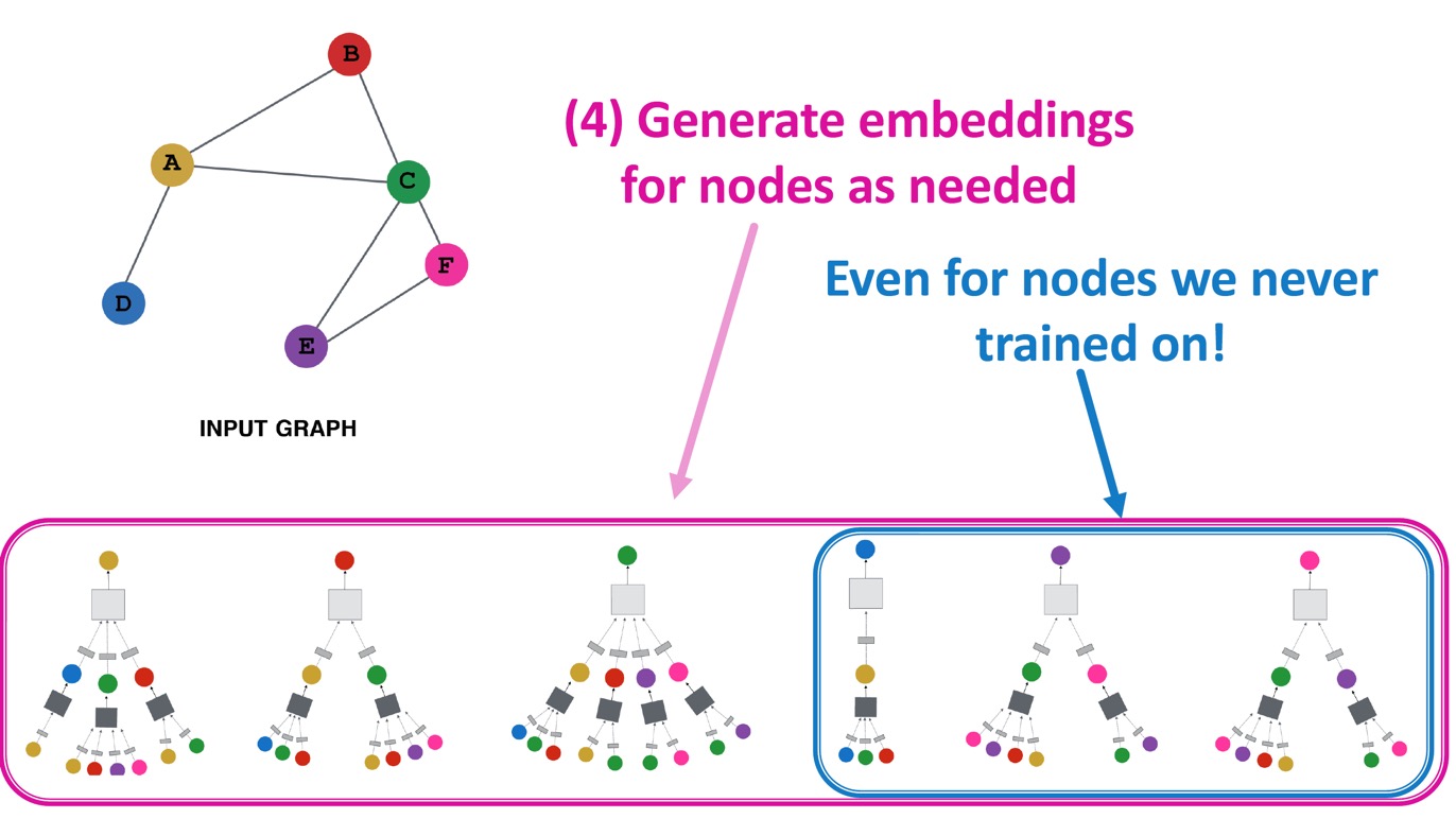 이는 본 적 없는 graph에 대해서도 똑같이 적용될 수 있다. 예를 들어, organism A를 나타내는 protein interaction graph로 학습한 모델을 사용하여 organism B의 embedding을 생성할 수 있다.