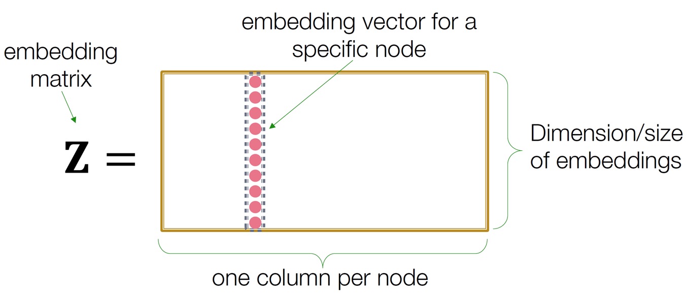 이 행렬에서 \(i\)번째 행은 \(i\)번째 node의 embedding을 나타내게 된다.