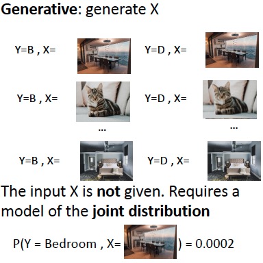input \(X\)가 주어지지 않은 상황이고, 이때 generative model은 joint distribution \(P(Y,X)\)를 모델링한다.