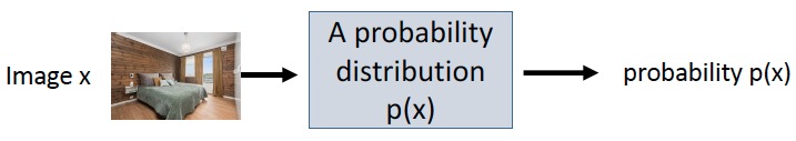 예를 들어, Fig 3에서와 같이 image \(x\)라는 data 하나를 통해 probability distribution \(p(x)\)를 얻고, 이를 여러 data에 대해 반복하여 probability \(p(\mathbf{x})\)를 얻는다. 이러한 \(p(\mathbf{x})\)에서 새로운 image를 샘플링할 수 있기 때문에 'generative'라고 볼 수 있다.