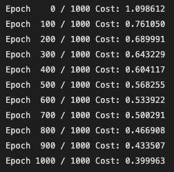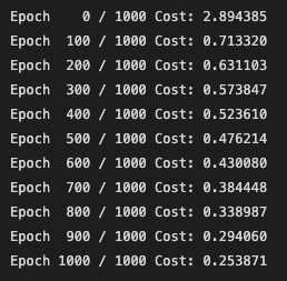 print('Epoch {:4d} / {} Cost: {:.6f}'.format(