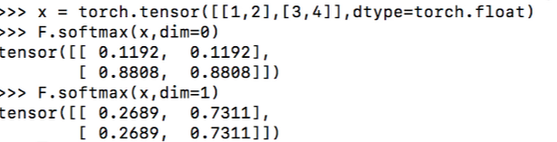 이때, PyTorch에서 제공하는 'softmax' 함수를 사용하면 간단하게 softmax를 계산할 수 있다.