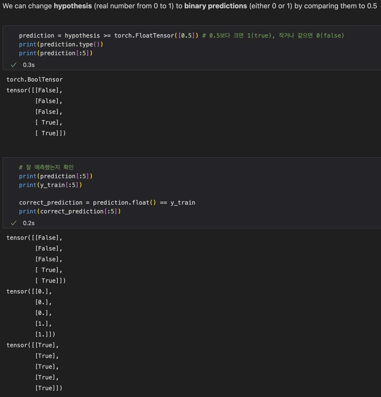 prediction = hypothesis >= torch.FloatTensor([0.5])
