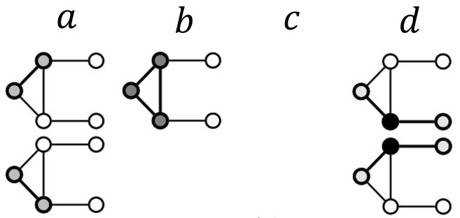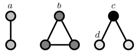 이를 graphlet count vector로 나타내면 \(\boldsymbol{f}_G = \left(1, 3, 6, 0 \right)^T\)으로 나타낼 수 있다.