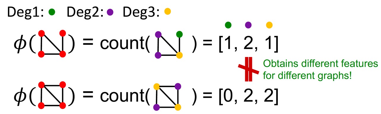 이러한 방식으로, Graphlet kernel과 Weisfelier-Lehman(WL) Kernel 모두 'Bag-of-Something'을 통해 그래프를 표현한다. 문제는 어떤 것을 셀 것인가이다.