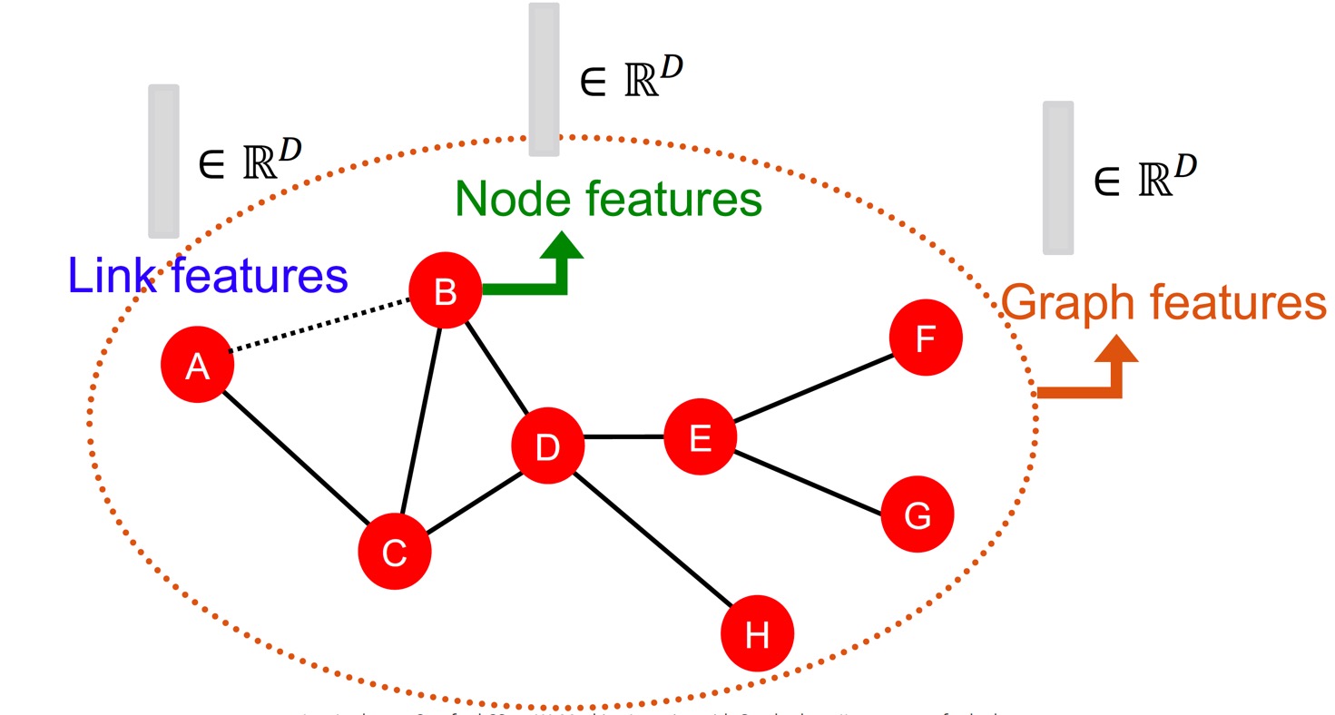 이때 Design으로는 \(d\)차원의 벡터를 feature로, node, edge, set of nodes, 혹은 graph 전체를 object로 볼 수 있다.