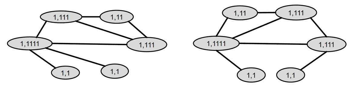 하지만, 노드 개수가 같다고 해도 완전히 다른 그래프일 수 있다. Edge가 매우 다양하게 존재할 수 있기 때문이다.