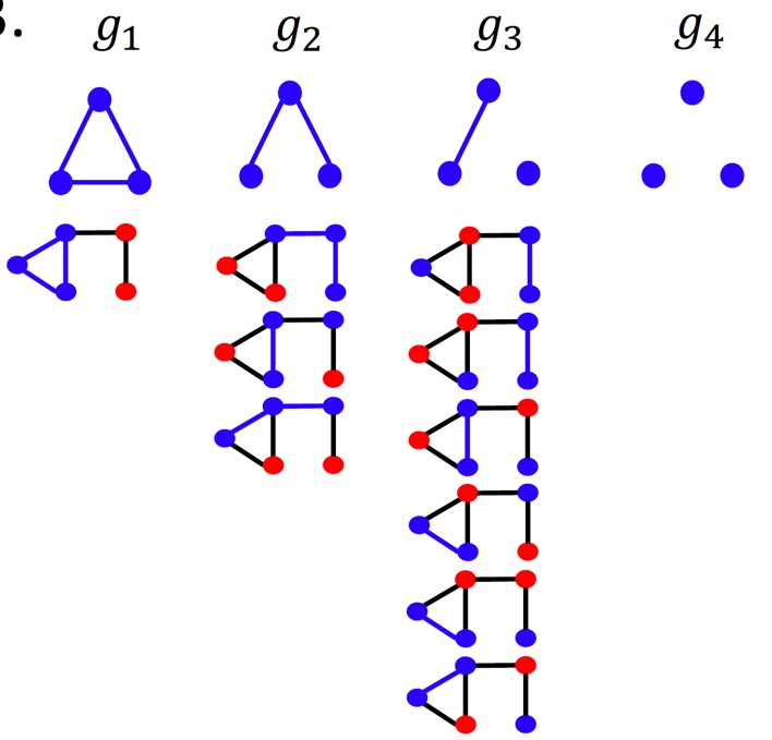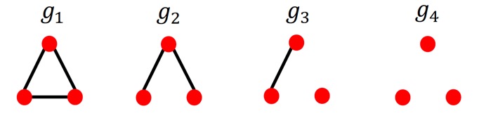 위 예시에 대해 k=3인 graphlet에 대한 예를 들어 보면, \(G\)는 다음과 같은 graphlet을 포함할 것이다.