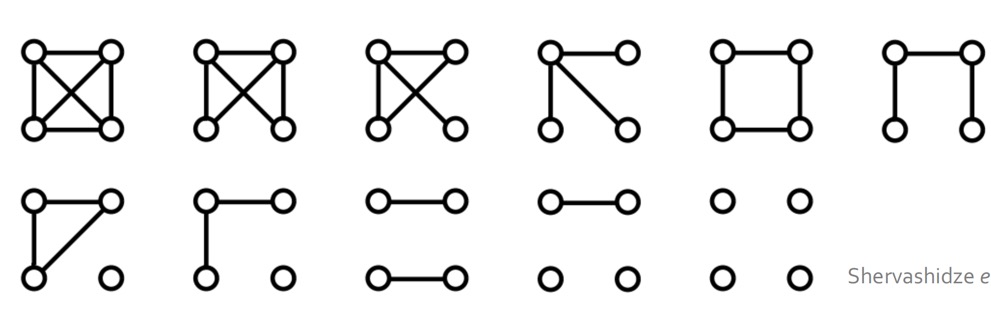 k=4일 때에는 다음과 같이 11개의 graphlet이 존재한다. (원래는 6개이다.)