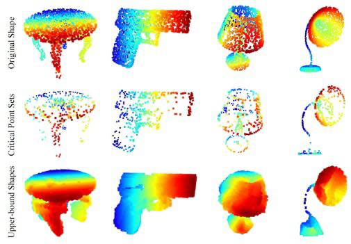 Fig 10의 결과에서 색상은 depth를 나타내고, critical points란 global shape feature를 결정하는 점, 즉 이 점들이 없어지지만 않는다면 결과가 바뀌지 않는 점들을 말한다.