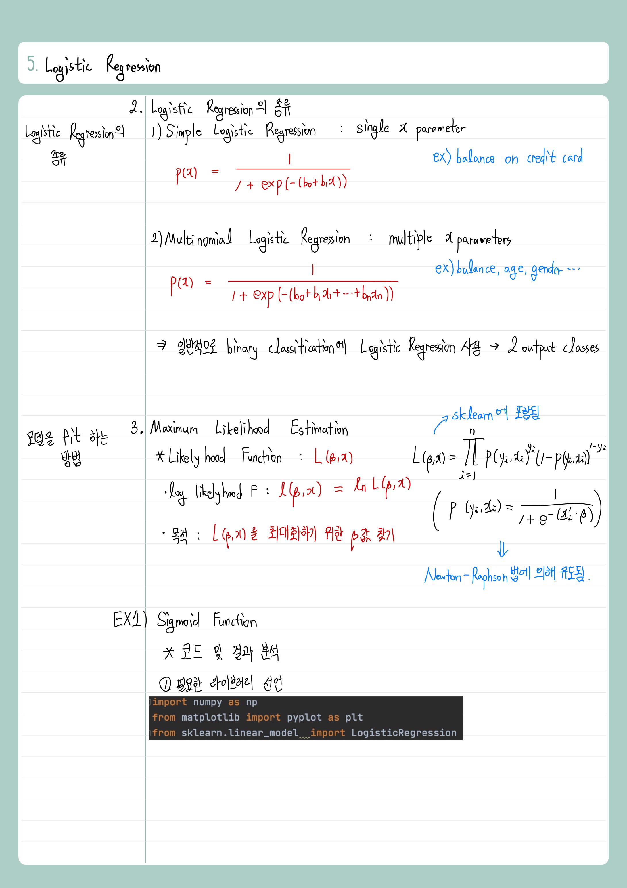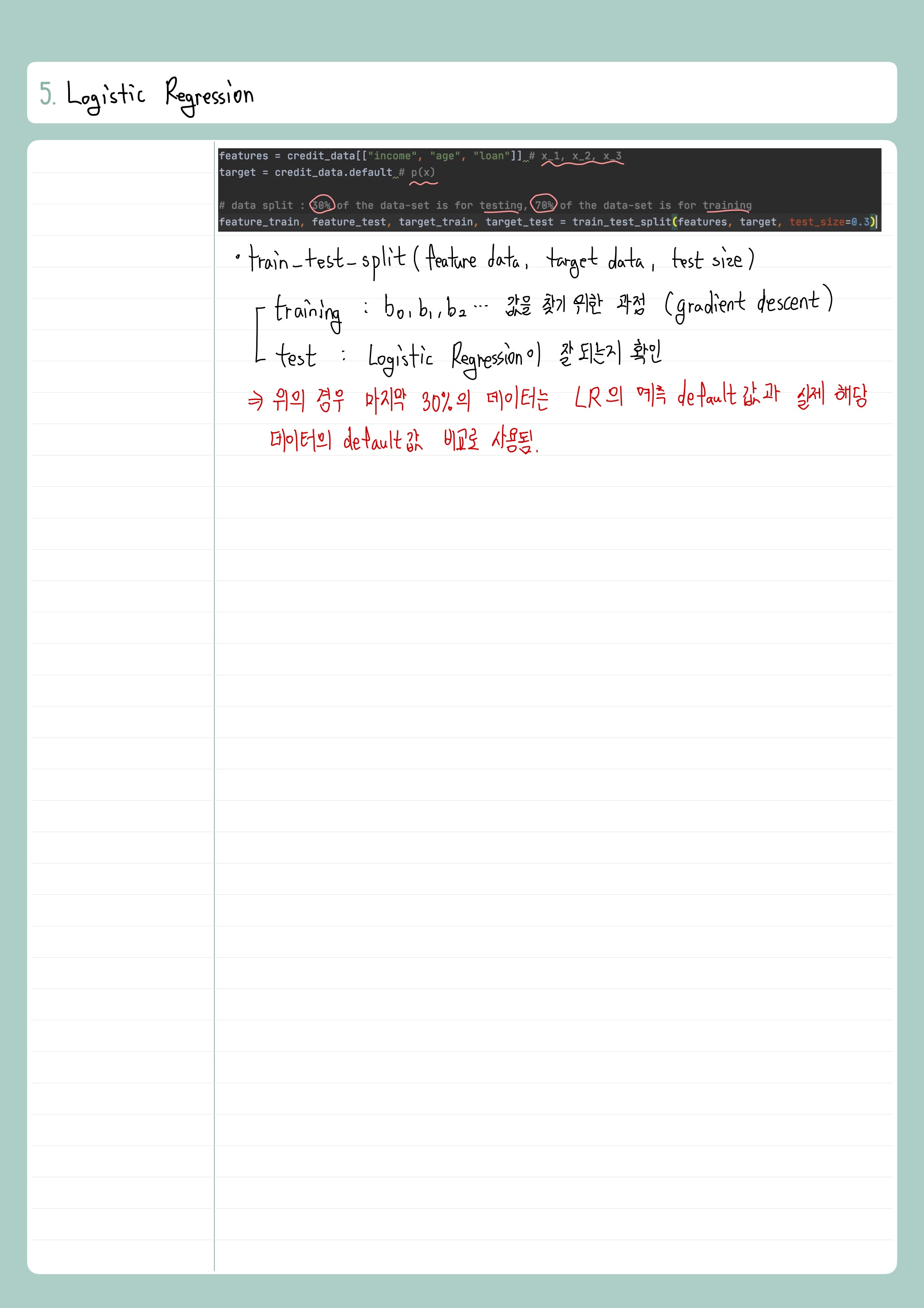 model = LogisticRegression() # Gradient Descent 방법으로 b parameter 구함