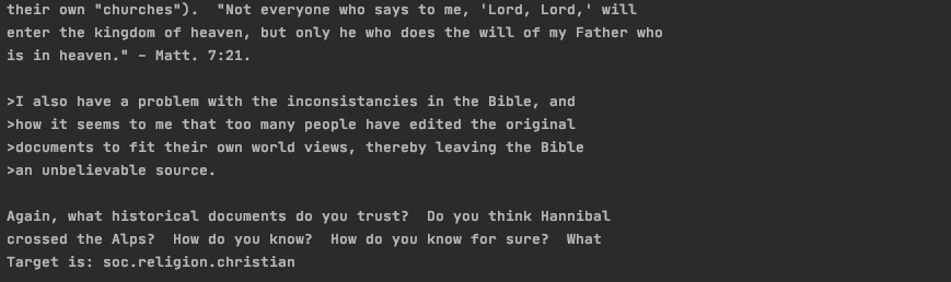 - 10 번째 data의 주제는 'soc.religion.christian' !!