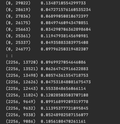 - print의 결과 : tf-idf values