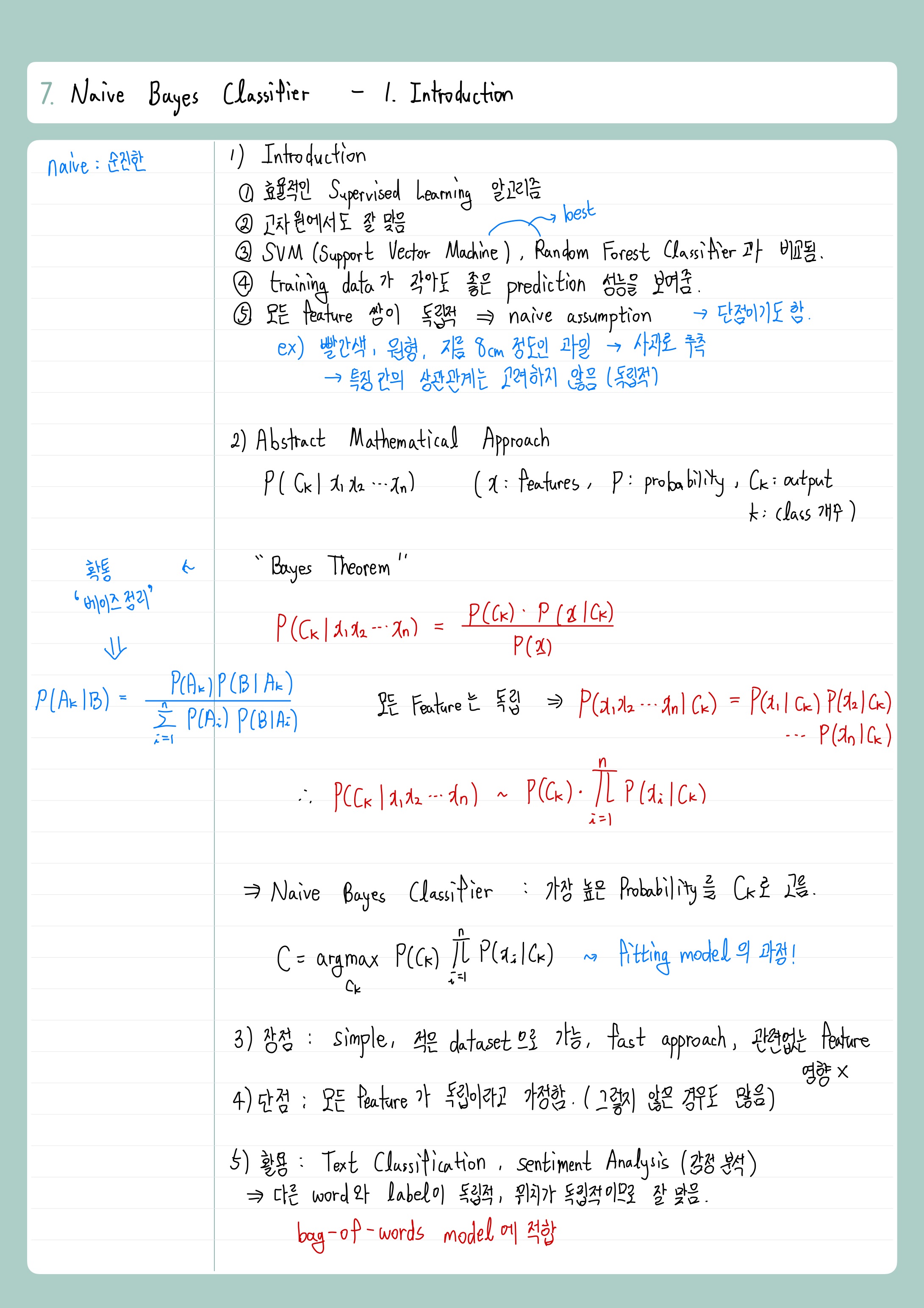 - 연관이 있지만 (독립이 아니지만) Naive Bayes Classifier 잘 동작함.