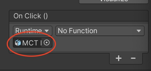 그리고, Button의 Inspector의 'Button - On Click()'에서 추가했던 항목에 O 표시된 부분 위에 Button 클릭 시 구현할 대상, 즉 Object를 드래그 앤 드롭하여 Button 클릭 시 구현할 대상을 설정해주자.