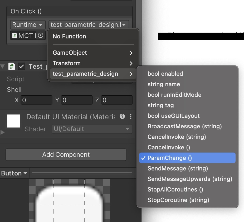 그럼 아래와 같이 On Click() 부분에 버튼을 눌렀을 때 어떤 script의 어떤 function을 실행할 것인지 설정할 수 있다.