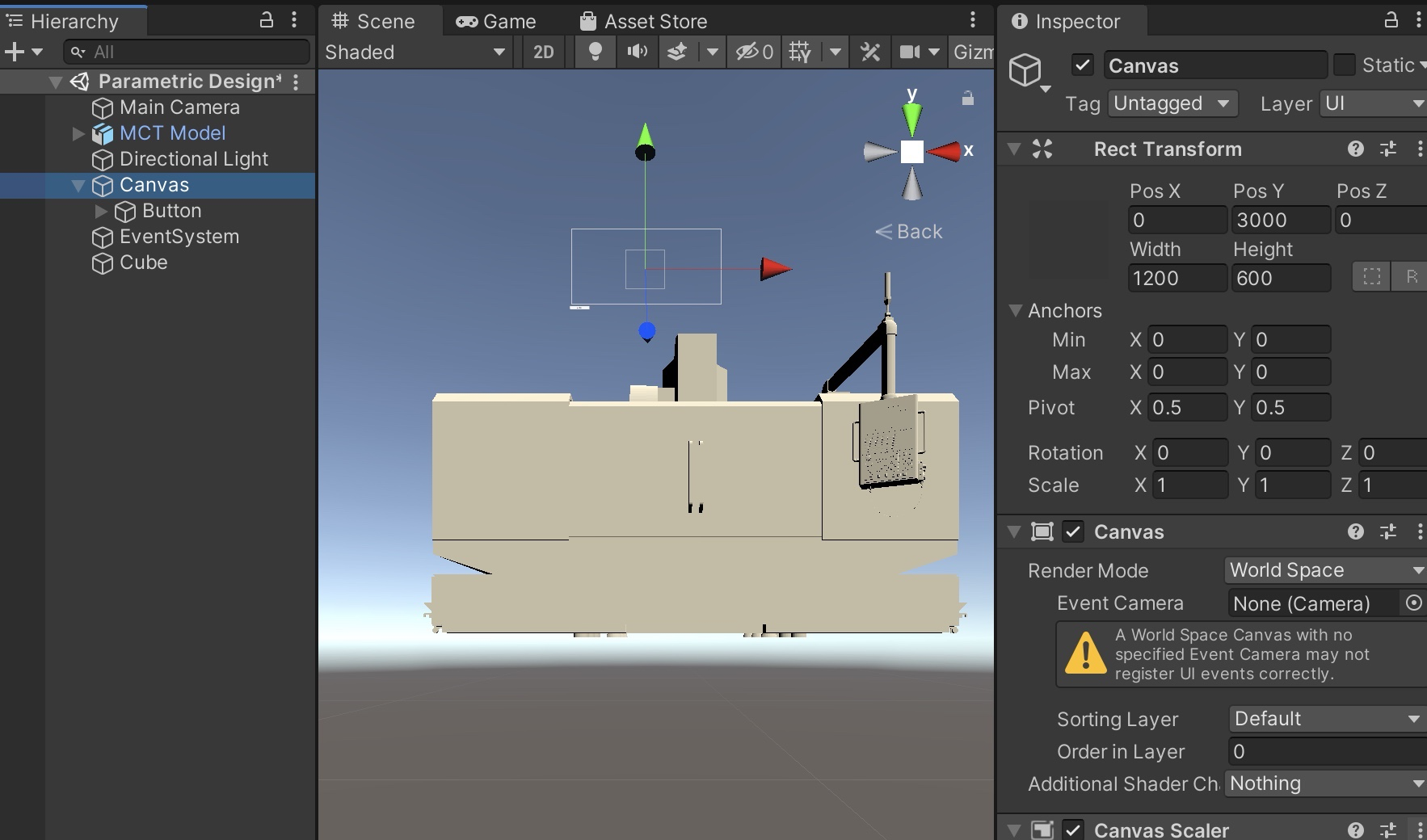 'Canvas'는 Button, Text, Pannel 등 다양한 기능을 구현하는 UI들을 표현해주는 스케치북이라고 생각하면 된다.